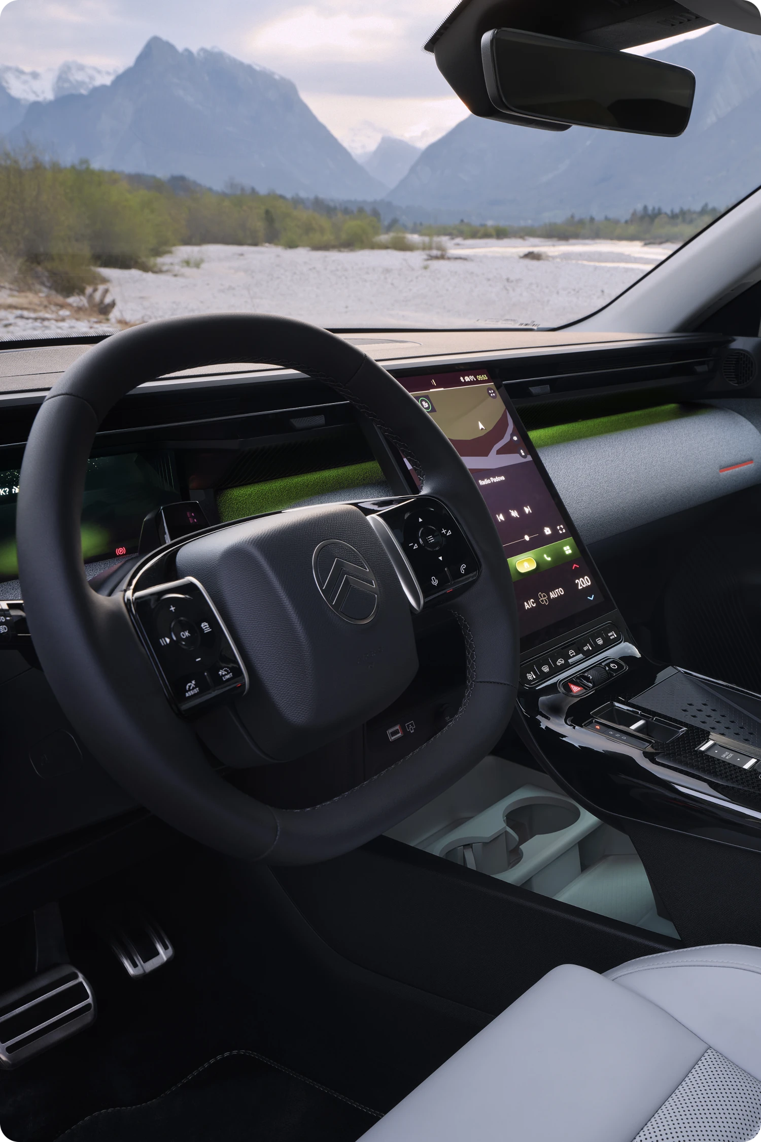 Новый Citroën C5 Aircross оснащен 13-дюймовым центральным экраном Waterfall. Благодаря невероятно лёгкой вертикальной конструкции он словно парит перед приборной панелью, а затем одним движением опускается вниз, плавно соединяясь с центральной консолью.